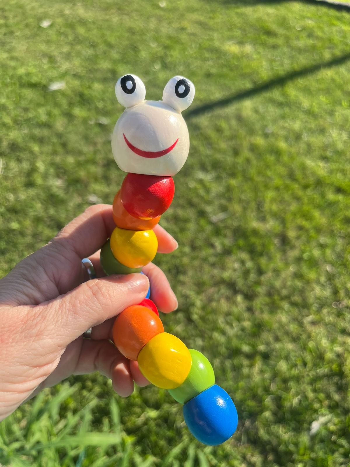 De madera con sus partes de colores fuertes que llaman la atención de los más pequeños , el gusanito es flexible